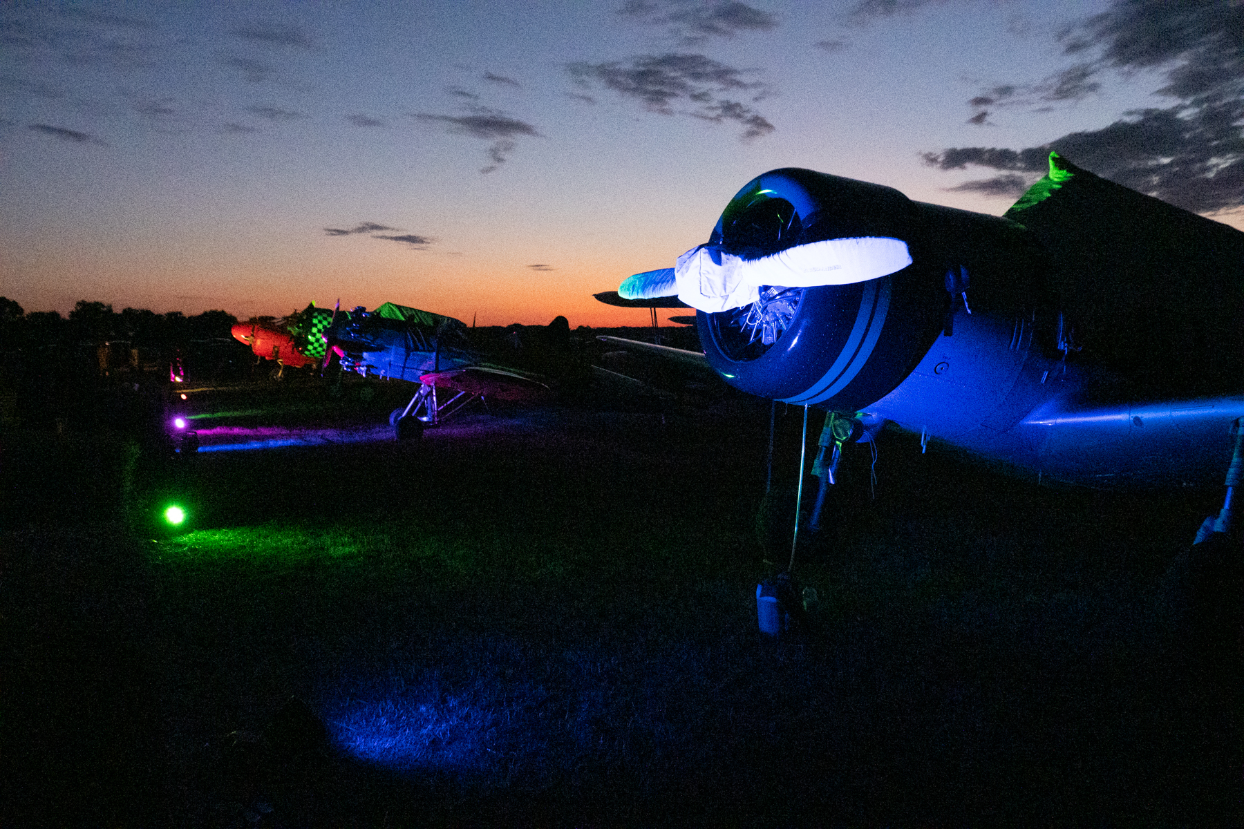 Auf einen herrlichen Abend mit Musik, Lagerfeuer und toller Beleuchtung für die auf dem Flugfeld abgestellten Flugzeugen folgte ein sonniger Morgen, an dem immer noch weitere Maschinen eintrafen. Und amerikanische Autos, das Wochende hatte ja das Motto ‚US-Klassiker‘ . Und natürlich gab es auch Flugshows. Das war ein Tag zum wohlfühlen, schauen, staunen, fachsimpeln … wenn da nicht wieder die Wettervorhersage gewesen wäre. Aufkommendes Schlechtwetter Abends in Süddeutschland. Nach intensivem Beratschlagen haben wir uns dann Nachmittags auf die Heimreise gemacht. Und wieder hatten die Wetterfrösche richtig gelegen, die Schwäbische Alb empfing uns mit beginnenden Regenschauern, und mit den ersten Tropfen landenden wir erschöpft und glücklich auf dem heimatlichen Übersberg.