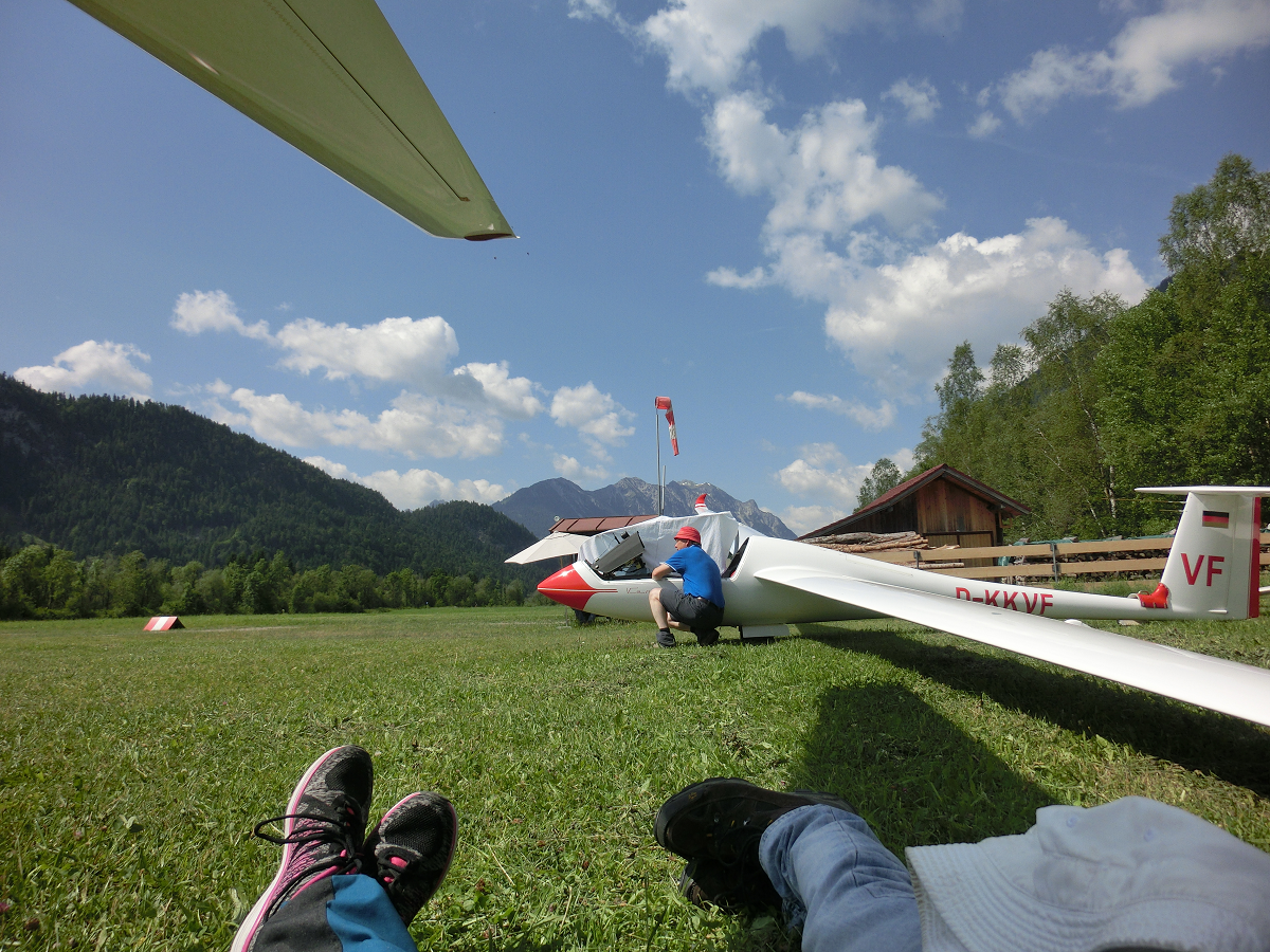 Seit einigen Jahren fährt eine kleine Gruppe von erfahrenen Piloten aus unserem Verein für eine Woche nach Reutte – einem Flugplatz am nördlichen Rand der Alpen bei Füssen – um dort zu Fliegen. Dieses Jahr schloss ich mich ihnen an. Aber da ich noch nicht sehr viel Erfahrung mit Flügen außerhalb der Platznähe meines Heimatflugplatzes habe, haben wir unser Vereins-Flaggschiff den Arcus – einen 20m Doppelsitzer mit ausklappbaren Hilfsmotor – mitgenommen, da alleine fliegen in den Alpen ohne Einweisung und Erfahrung zu gefährlich wäre.