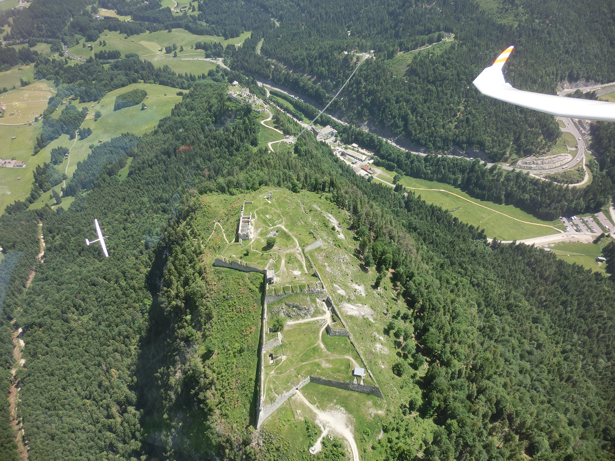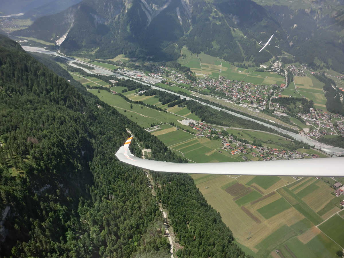 Der Flugplatz Reutte liegt direkt neben dem sogenannten Schlossberg (Haushang). Wenn dann das Talwindsystem einsetzt, wird der Schlossberg aus der richtigen Richtung angeblasen und man kann so durch achtern am Hang Höhe gewinnen.