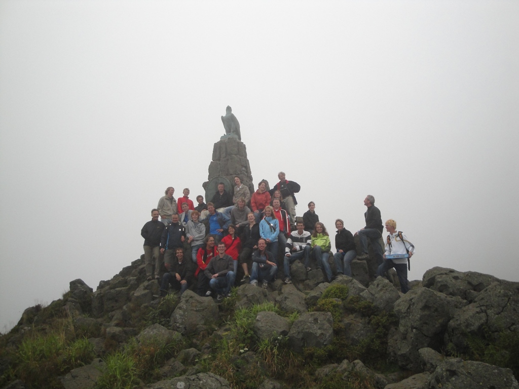 Donnerstag morgens wachten wir alle bei bewölktem und nebligen Wetter auf. Da die Vorhersagen für den Tag sich nicht bessern sollten, machten sich mittlerweile 31 Leute zur ungefähr 35km entfernten Wasserkuppe – der Wiege des Segelflugs in Deutschland und gleichzeitig höchster Berg der Rhön – auf. Dort besuchten wir das Segelflugmusem und erfuhren viel über die Anfänge des Segelfluges, die ersten Konstruktionen und die ersten Wettbewerbe, die geflogen wurden. Anschließend wanderten wir zum 1923 errichteten Fliegerdenkmal.