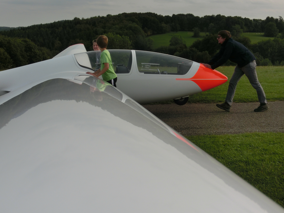 Auch die anderen Pflichten auf dem Flugplatz haben sie kennengelernt, angefangen beim Ausziehen der Seile, über das Startschreiben und Telefonieren mit der Winde, bis hin zum Schieben der Flugzeuge. 26 Starts, das heißt sie haben an diesem Tag ca. 13 Tonnen Flugzeugmasse durch Muskelkraft über den Flugplatz geschoben.